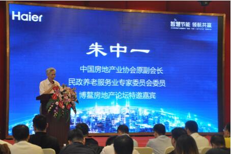 图片说明:中国房地产业协会原副会长朱中一先生发表《房地产市场走势及全装修商品房发展》主题演讲