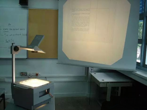 其实这个幻灯机的原理与我们现在熟知的投影仪是一样的,借助机器内部的灯泡(传统灯泡),聚光并将光通过透镜和幻灯片,从镜头处投放到幕布或者白墙上。而需要投放的内容要提前写在幻灯片上,在讲课的时候,手动替换。幻灯片的内容大体上是老师要讲课的内容按照步骤一张一张地写或者画出来,演示的时候再一张一张的放上去,这就是最初的PPT吧!