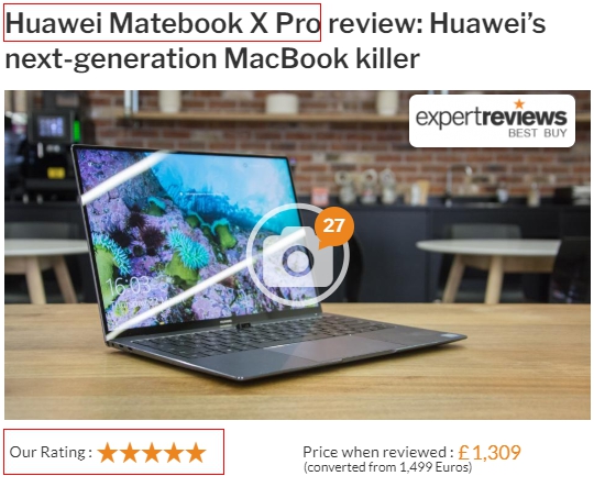 甚至!Expert Reviews将五星好评授予华为MateBook X Pro笔记本,凭啥?