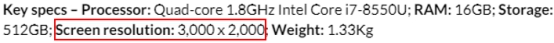 华为MateBook X Pro屏幕分辨率一下推到 3000 x 2000,Expert Review的X-rite“色度计测试证明,华为3K显示屏最大亮度高达488cd/m2,对比度高达1,515:1,sRGB 色域为96.2%。总之,华为笔记本显示屏质量没的说。”
