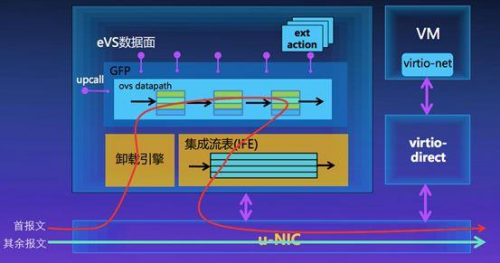 在今年,华为又发布了新一代的eVS 3.0:通过集成流表卸载架构,以及“软硬结合”的I/O虚拟化技术,成为业界首个千万级虚拟网络交换机,其与新一代的u-NIC智能网卡相结合,最高可达到48Gbps的网络吞吐能力,超过1500万pps的纯转发性能。