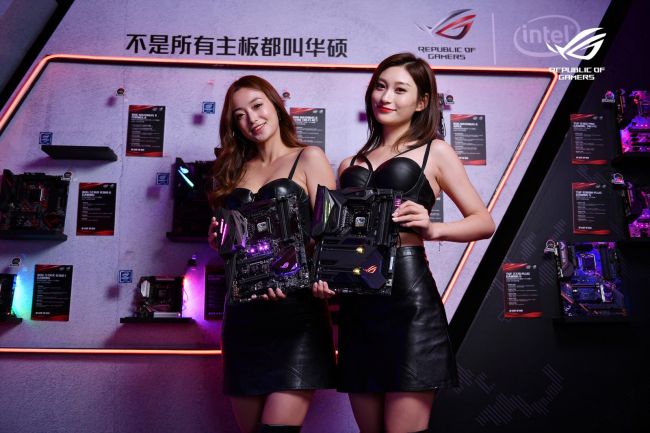此次盛会上,活动现场精心设计了一面电竞主板墙,展示了酷睿i9的彪悍队友ROG STRIX X299-XE GAMING,荣获2018年德国红点设计大奖的ROG MAXIMUS X FORMULA(后续简称ROG M10F),世界超频纪录的缔造者ROG MAXIMUS X APEX,荣获年度卓越IT产品奖的ROG MAXIMUS X HERO(WI-FI AC)[后续简称ROG M10H(WI-FI)],高性能电竞装备ROG STRIX Z370-E GAMING、ROG STRIX Z370-I GAMING、ROG STRIX B360-F GAMING、ROG STRIX B360-G GAMING和STRIX B360-I GAMING主板。