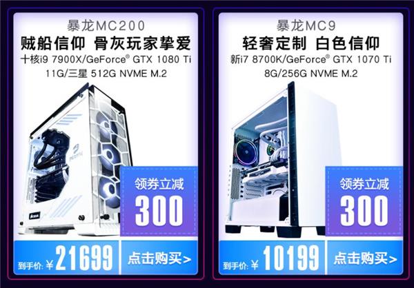在高端主机专场,名龙堂派出了暴龙MC200作为代表,以黑白为设计元素,简约但不简单。配置方面采用英特尔酷睿i9-7900X处理器,强大的10内核20线程,配合GeforceGTX1080Ti显卡,性能上乘,横扫市面上所有热门大型游戏,带来沉浸式的游戏体验。现在这款主机领券到手价仅需21699元,为信仰而充值刻不容缓!