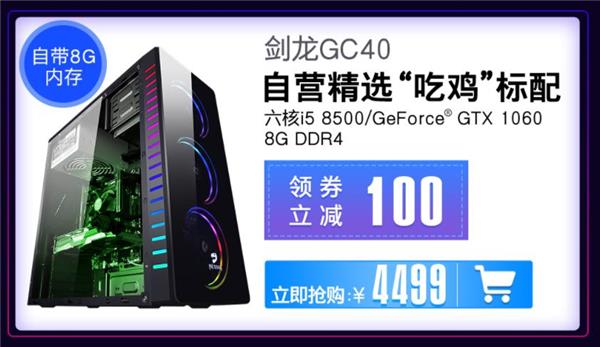 除了新品之外,名龙堂的爆款主机剑龙GC40也是十分值得入手的,该主机采用英特尔酷睿i5-8500处理器,并搭配GeforceGTX1060显卡,为游戏提供充足的火力,助力玩家轻松吃鸡。剑龙GC40现在领券到手价仅需4499元,让玩家以超值的的价格就能购入“吃鸡”神器,名龙堂可谓实力宠粉。