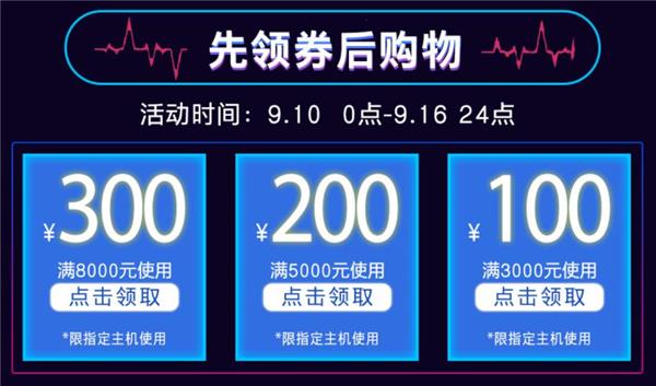 在9月10日-9月16日活动期间,登录名龙堂京东自营旗舰店领取优惠券,购买指定主机可立减高达300元,让玩家们能以超值的价格将心仪的主机抱回家。