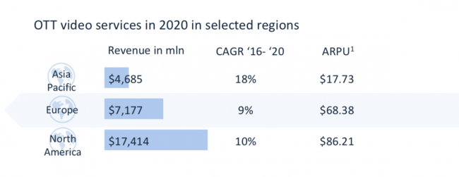 全球OTT收入持续增长,亚太地区增长最快