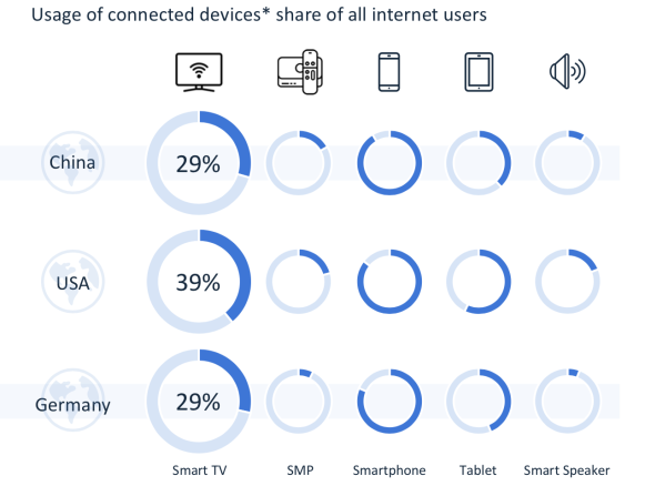 智能电视在全球OTT行业设备占有率上具有很高的比重。目前,全球互联网用户在选择使用媒体连接设备上,智能电视的普及率要远高于盒子。白皮书预测,基于新技术的开发和成熟,未来智能电视将不断融合其他媒介特质,以符合市场需求的方向继续前进,继续发挥其作为家庭娱乐核心的潜力和价值。