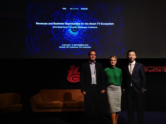 荷兰当地时间9月15日,TCL集团旗下雷鸟科技携手全球权威数据公司Statista在荷兰国际广播电视设备展览会(IBC 2018)上发布了《2018年全球智能电视服务运营发展报告》(以下简称“白皮书”)。白皮书对目前全球OTT行业所处的环境和当下OTT多元化发展进行了具体分析,并对未来趋势和方向做了深入的解析。在IBC展会上,雷鸟科技CEO郭彤先生受邀发表主题演讲,他在演讲中表示,目前全球OTT行业已进入黄金期,未来将呈现更广阔的发展前景。