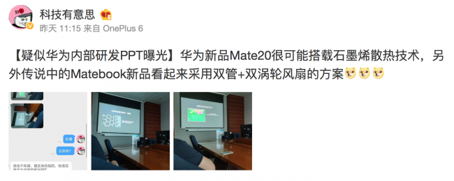 早些时候,华为发布全球首款7nm制程工艺的麒麟980处理器,同时宣布首款搭载该处理器的新旗舰华为Mate20,将于10月16日全球发布。现在离发布会还有不足一个月的时间,网络上已经陆续传出关于华为Mate20的曝光消息。让人激动的是,近日有消息传出,华为Mate20将有可能采用石墨烯散热技术!