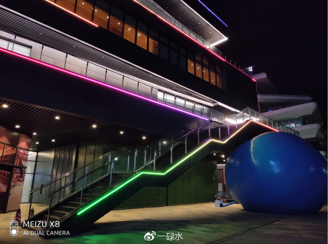 夜景拍摄对千元机而言向来是个硬槛,噪点、涂抹现象严重,往往影响了照片给人的整体观感。魅族X8与魅族Note8由于拥有f/1.9大光圈与1.4μm大像素,能够适应绝大部分弱光场景。从夜拍的样张看来,魅族X8的夜间成像依然能保持明亮通透,只有远处亮度较差的建筑物外沿,才出现了轻微的涂抹现象,表现在同价位之中堪称出色。