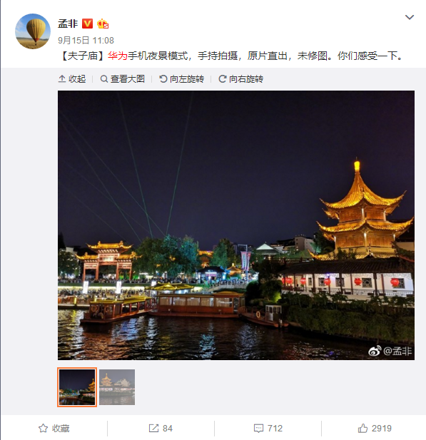 对于华为手机的拍照能力,应该不用多说大家都知道非常出色,特别是华为P20系列更是让华为手机的拍照得到了权威机构的认可,遥遥领先于对手。从孟非微博中也可以看出他对于华为手机的拍照效果非常满意,甚至还对华为手机的拍照功能提出过建议。如此说来,华为Mate 20系列全新打造的超广角+超微距功能,以及覆盖更多焦段的摄影性能,相信还将让孟非发掘出手机拍照的更多乐趣并分享给大家吧。