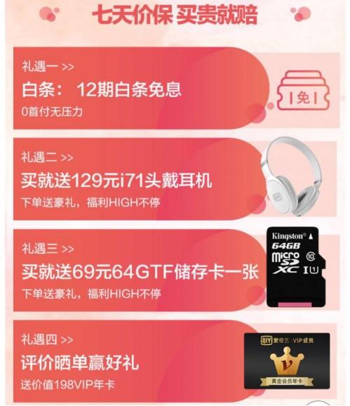 你以为这就结束了吗?当然不会这么简单!活动期间下单爱奇艺奇遇2VR一体机的用户,即可获得价值129元的爱奇艺i7蓝牙耳机、69元的TF卡等多重好礼,评价晒单更有机会免费享受价值198元的爱奇艺VIP年卡福利。