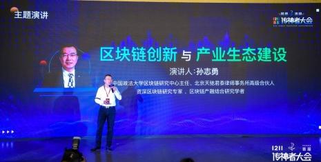 对于区块链深入研究的中国政法大学区块链研究中心主任孙志勇,分享了《区块链创新与产业生态建设》的主题内容,他认为,区块链技术不是单一的技术,是综合技术应用,主要技术包括分布式存储,点对点通信与非对称加密技术。在未来的产业竞争中其应用场景非常广阔,其中最具产业前景并可能对经济组织形态产生影响的是智能合约。