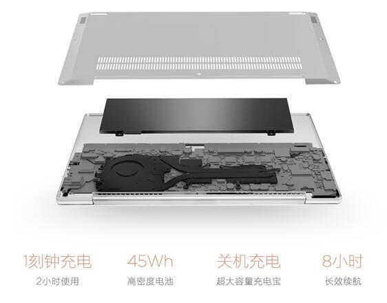 一些便携轻薄本产品,为了让笔记本更轻更薄,降低了电池的配置。而另一些产品则相反,放松了对轻薄的追求,作为出色的爆款,小新Air 13在各方面都不妥协。联想小新Air 13配备了45Wh高密度电池,可以支持长达8小时的续航,而且具备快速充电支持,充电十五分钟,即可支撑两小时的续航使用。不仅如此,还具备关机充电功能,可以为手机和其他数码设备提供充电,成为随身型能源支持中心——超大充电宝。