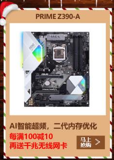 目前购买PRIME Z390-A主板,每满100减10元后还可叠加使用满999减120元优惠券,并赠送无线网卡一套,优惠力度同样诱人!