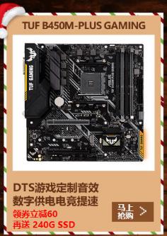 目前购买TUF B450M-PLUS GAMING主板,可使用满499减60元优惠券,并赠送240GB固态硬盘一块,按要求评论晒单还可返100元E卡。面对如此丰厚的双旦特惠,A饭们真心不容错过这款电竞利器!