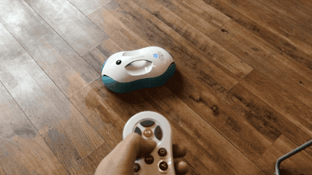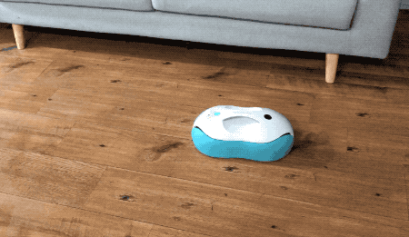ROBOSPIN没有轮子,产品全部的重量都在按压抹布,拖地的力度更大,灰尘、黏糊的果汁牛奶、头发和蜡笔、油腻的油渍等都能被处理干净。