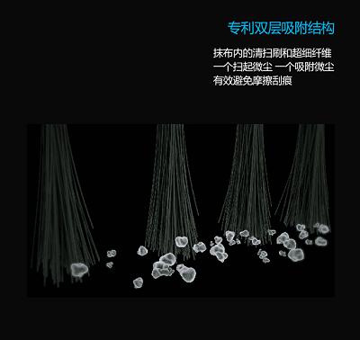 ROBOSPIN拖地机器人的拖布采用超细纤维材质,拖布的双层吸附结构设计可是专利技术,软质的清洁拖布是唯一接触地板介质,有效的避免摩擦刮痕。