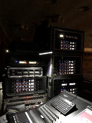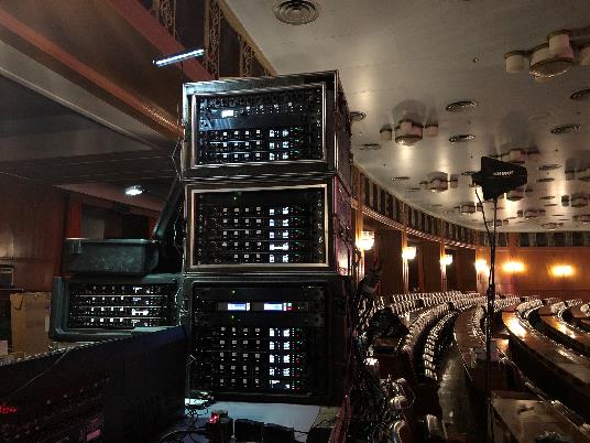 虽然如此,本着尽善尽美的原则,工程师们还在舞台上架设的天线方面做了周密的布置。一组天线架设于观众席后方调音台区域,另外一组天线架设在舞台上,由于舞台距接收机距离较远,并且现场对铺设线缆要求极高,所以舞台上天线采取光纤回传射频信号方案(RFoF)。