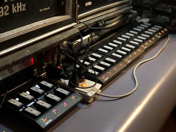 本次演出现场,舞台规模很大,纵向范围很广,舞台分为上下3层,并且每层都有演员佩戴舒尔 AD1腰包+MX153头戴话筒进行演出。由于演出为最高安全级别,所以要求在演员登上舞台之前保障无线话筒信号绝对稳定,所以务必要在上场前对腰包+头戴话筒进行监听,这就带来一个技术问题需要解决:如何将无线话筒信号覆盖至后台区域?现场舒尔应用工程师为所有使用AD1腰包发射机的通道启用了四分集功能,这个功能通过将四个天线输入分配到单个通道,可以提供更广的信号覆盖范围,从而更好地防范多路径干扰、衰减和其他射频异常。实践证明,四分集接收效果非常稳定,各种大型演出现场没有出现过一次掉频现象。另外,Axient Digital通过自带五段通道质量表对射频信噪比进行实时监测,实现无线操作距离范围评估,同时查看潜在干扰。