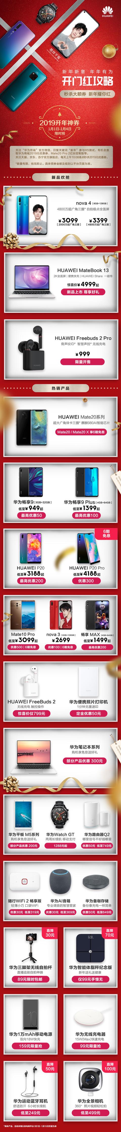 2018转瞬即过,2019如期而至!新年伊始,华为为了回馈新老顾客,重磅推出“秒杀大额券, 新年耀你红”的开门红活动。优惠产品覆盖手机、笔记本、平板、智能穿戴和智能配件等各大种类,还有2019开年神券以及智能配件9.9限时秒杀活动。如果你也打算入手华为系列产品及智能配件,get这份剁手攻略,照着买绝不后悔。快来看看什么产品最值得入手吧!