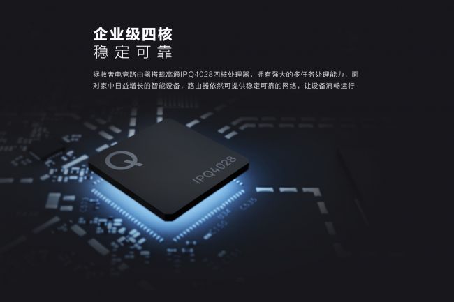 在芯片选择上,联想拯救者路由器搭载的是高通IPQ4028企业级四核芯片,据说这也是企业级芯片首次用于消费市场。企业级芯片带来的就一个字“稳”,最大支持60000个进程同时运行、4000个IP地址分配和300个设备并发,这并不是哪个消费级路由器可以做到的。