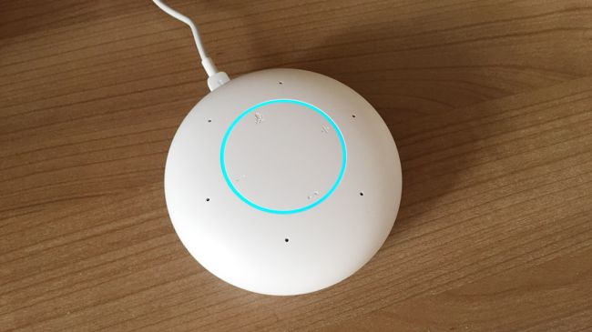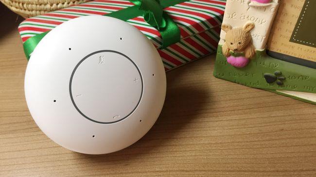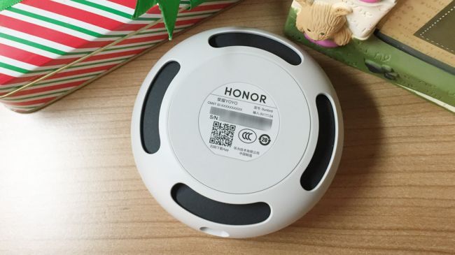 荣耀YOYO智能音箱的扬声器置于音箱的底部。这样的设计可以带来两个好处,首先是可以有效控制产品的体积,其次就是反射出音的方式可以实现360度无死角出音,收听体验更好。