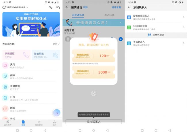 而且值得一说的是,荣耀YOYO智能音箱的智能通话功能采用网络电话,不需要单独插入电话卡即可使用,每月还有3000分钟的免费通话时长,对于一般用户而言基本上可以算是免费了。