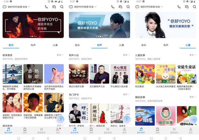 荣耀YOYO智能音箱同样提供了丰富的声音内容,以三代同堂的家庭为例,不仅有年轻人喜欢的音乐、倾听FM等有声内容、广播电台等,还有老年人喜欢的相声、评书、戏曲,贝瓦儿歌、宝宝巴士等也满足了儿孩子的内容需要,充分满足了不同年龄层次用户的需求。