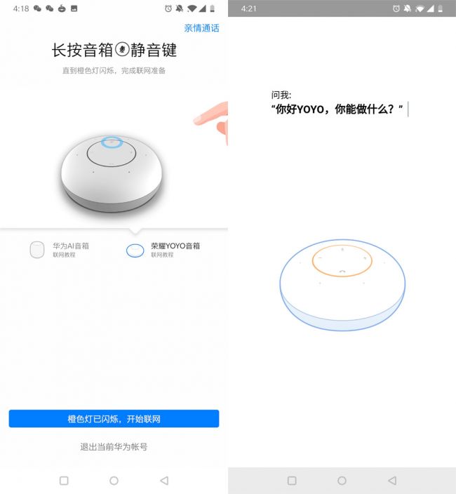 在入手难度上,荣耀YOYO智能音箱几乎为零。只要下载“AI音箱”App,便可通过手机连接荣耀YOYO智能音箱,完成音箱的网络和手机的绑定。