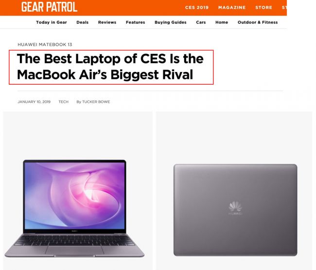 美国知名数码杂志GearPatrol直接在标题处表明了立场,认为华为MateBook 13是苹果MacBook Air目前遭遇的最强对手,并阐述了自己的观点——华为MateBook 13拥有比MacBook Air更薄的机身,更窄的边框,以及3:2屏幕塑造的更协调的身材比例,在全球Windows笔记本阵营实属难得!