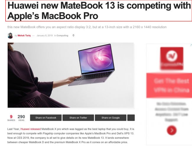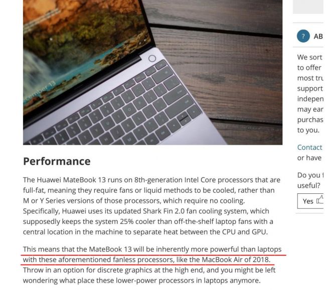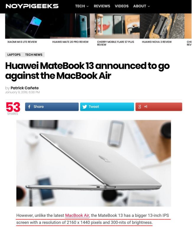 秉承同样观点的,还有另一家知名科技网站TechObserver,它们同样也在标题中指出MateBook 13的对手其实是MacBook Pro。原因就在于MateBook 13顶配版采用了第八代酷睿i7-8565U和高性能MX150独显配置组合,结合3:2比例的2K高清分辨率屏幕,绝对是一台无懈可击的“生产力工具”!