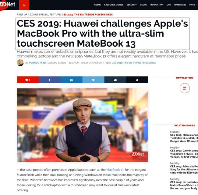 全球知名科技媒体ZDNet不吝赞美之词,其资深编辑Matthew Miller认为华为MateBook 13拥有挑战MacBook Pro的实力。
