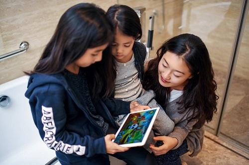 除此之外,其配备的多重护眼功能,不仅可以大幅度减少蓝光对双眼的辐射,还可像家长还可以随时感知和了解孩子的坐姿和距离。当孩子躺着看平板时,或是当孩子眼睛与屏幕距离小于规定距离时,它都会智能提醒孩子用正确的坐姿使用平板。在强光或弱光环境时中,儿童乐园会也会提醒孩子换到其它光线环境下使用平板。这种方式不仅可以培养孩子从小形成健康的用眼习惯,也使家长不必时刻跟在孩子身边进行督促,避免孩子产生逆反心态,可谓一举多得。