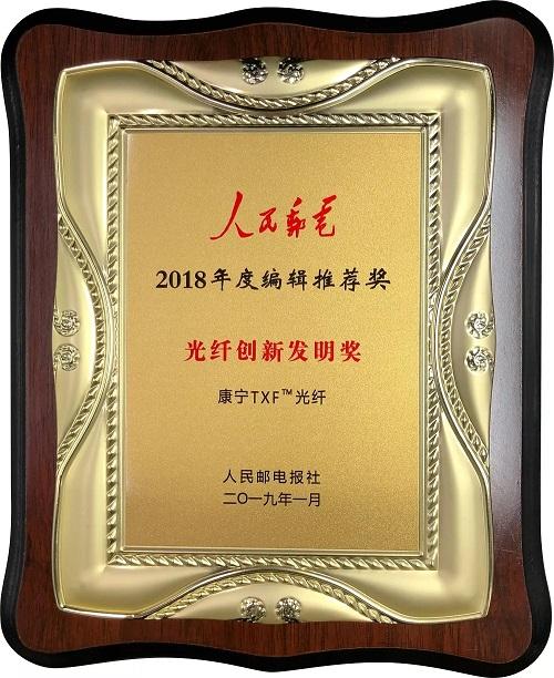 该奖项由运营商、行业专家及《人民邮电》资深编采队伍共同推出的2018年度《人民邮电》编辑推荐奖——“ICT创新奖”。这是对康宁自1970年发明第一根低损耗光纤以来,一直致力于光纤的创新和发明的认可。