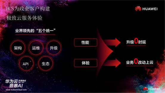 作为以一体化全栈方式交付完整的云服务平台,HCS延续华为云在云产品服务领域的技术领导力,将全栈技术创新带到客户数据中心,利用业界领先的五个统一(统一架构、统一运维、统一升级、统一API、统一生态)优势提供零时延的升级与零改动的上云体验,实现客户业务高安全合规、高稳定可靠、可持续迭代。