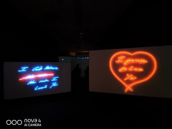 值得一提的是,在“爱的艺术”展馆中还有一组翠西•艾敏的《承诺爱你》系列影像作品,虽然这一场景十分昏暗,但是通过华为nova4的4800万像素高清三摄和硬件级HDR功能,提高了照片的整体进光量,将这部作品清晰地拍摄了下来。