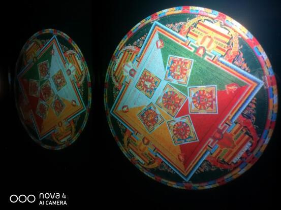 这次拍摄的“幻城浸入情景式艺术展”分为“城市系列”、“坛城”、“忘路”、“夜光森林”等多个主题部分,由于大部分展区都在室内,所以用普通的手机很难拍摄到场景的全貌。比如下图的场景当中,使用手机的普通拍照模式,只能拍到展览的一部分区域。
