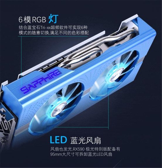 蓝宝石作为显卡行业的领军者,一贯追求高品质、高性能、高用料,而这款蓝宝石RX 590 8G D5 超白金极光版正是其招牌系列显卡,同时性价比非常高,感兴趣的玩家千万不要错过,更多详细内容还可前往蓝宝石京东、天猫旗舰店进行咨询。
