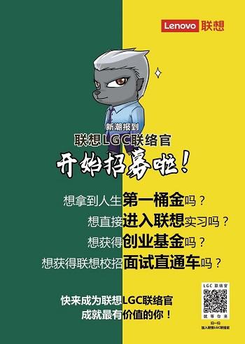 联想LGC联络官鼓励希望追逐梦想、迫求实战、渴望创业的在校大学生加入。目前LGC联络官成员已超过800人,覆盖134所高校。未来,每位LGC联络官还将得到联想更全面的支持,帮助他们实现梦想、建立经济基础,创造更大的人生价值,实现社会阅历及经济积累的双丰收!这样一个连接联想品牌和大学生的平台、你愿意加入吗?赶快关注官方微信账号并注册成为联想LGC联络官吧。