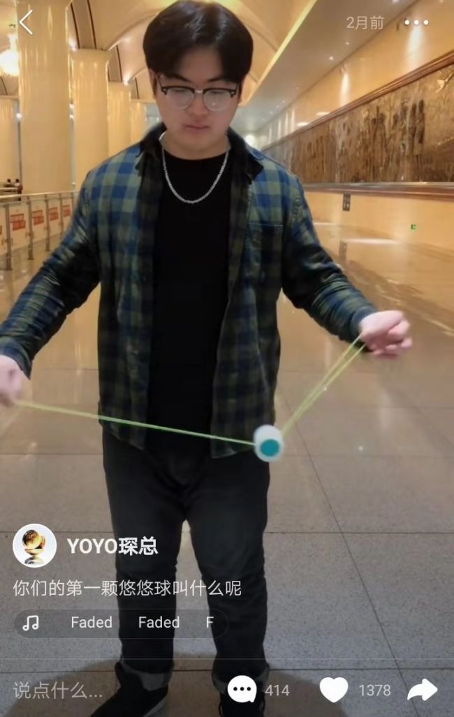 在现实中独在异乡不苟言笑的办公室文员,在快手上变成了粉丝们口中酷炫的“琛总”,刘子琛顺势也把自己的快手名改成了“YoYo琛总”。“特别感谢快手上每一个支持我的人,在快手上和大家互动,让我感觉生活充满乐趣,童年里一帮朋友切磋悠悠球的场景又回来了。”