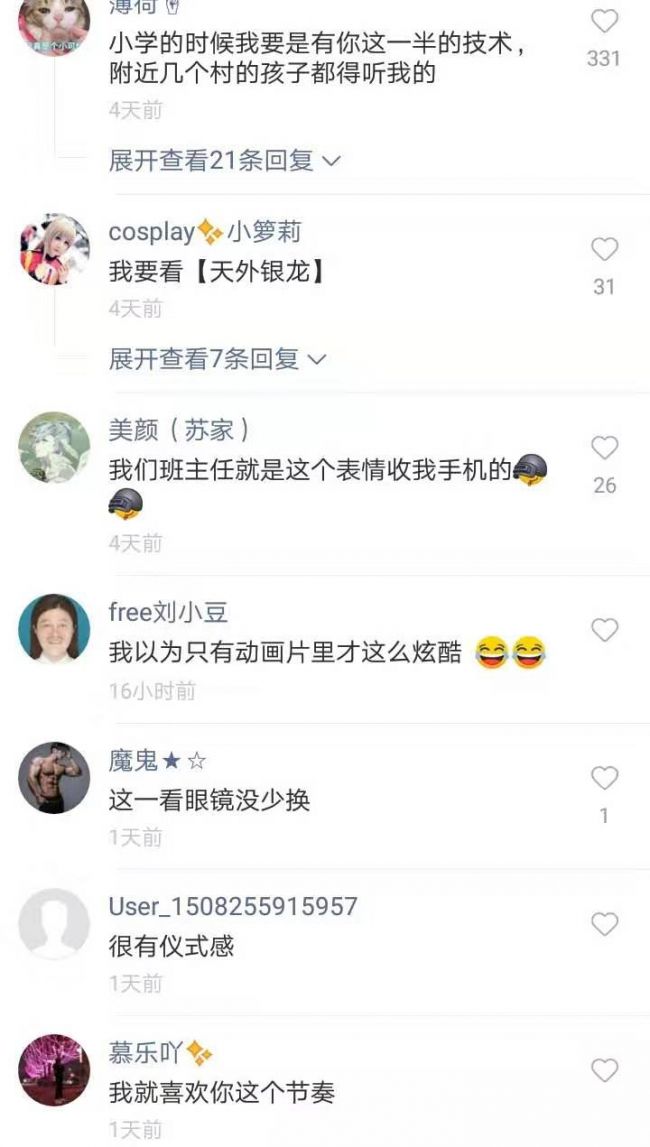 视频中的刘子琛表情严肃,穿着一身西装,专注地“炫耀”着手里的粉色悠悠球。在一根绳子的牵引下,小球似乎和绳子有着默契的“心灵感应”。有网友留言:“你这一身西装和粉色悠悠球的组合,真是萌到我了。”还有用户评论道:“要是我小时候能有你一半的技术,我们全村的小孩都得听我的!”评论区瞬间被80、90后“攻陷”,掀起了对悠悠球的集体回忆热潮。