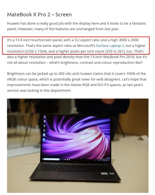 Trusted Reviews是英国的一家领先的科技产品评论网站,致力于为读者提供最佳的科技产品资讯和产品评测报告,范围涵盖了消费电子、IT、计算机产品、手机产品等,让读者在购买电子产品之前了解相关产品信息。该媒体在评测报告中将新款HUAWEI MateBook X Pro称为“HUAWEI MateBook X Pro 2”来与原有产品进行区分。经过专业且详细的测评,他们称赞并肯定了新款HUAWEI MateBook X Pro的产品实力,尤其大赞其屏幕素质,称称华为MateBook X Pro搭载的13.9英寸全面屏,有着与微软的Surface Laptop 2相同的3:2屏幕比例,但屏幕分辨率更高(3000 x*2000 vs 2256 *1504)。亮度提高到450 nits,覆盖了100%的sRGB颜色空间,极大满足了设计师人群的PC使用需求。