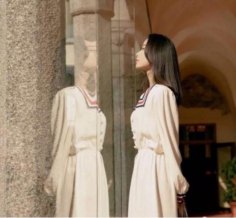 米兰时装秀,GUCCI全球代言人倪妮身着GUCCI早春新款的学院风白色连衣裙,“仙”气十足!