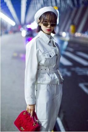 在最近的米兰时装周,身穿一套白色牛仔服,搭配一定白色贝雷帽,酷劲十足又不失淑女范的宋茜,时尚满分了!