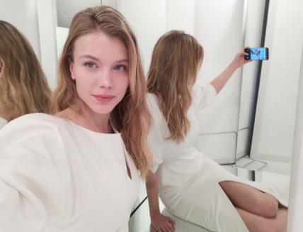 用华为nova4前置拍摄,也能玩出新花样。一袭白色光感晚礼服和一身绸缎质感的连体裤,前后错落的站位,将优雅随性和端庄气场彰显的淋漓尽致。图中飞扬的发丝和礼服的质感在高清的画面中清晰可见,AI微塑美颜对于面部的识别非常准确,在美颜的同时肌肤纹理细节也被保留,完美展现最真实的肌肤状态。
