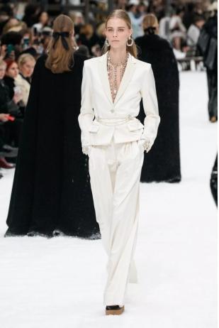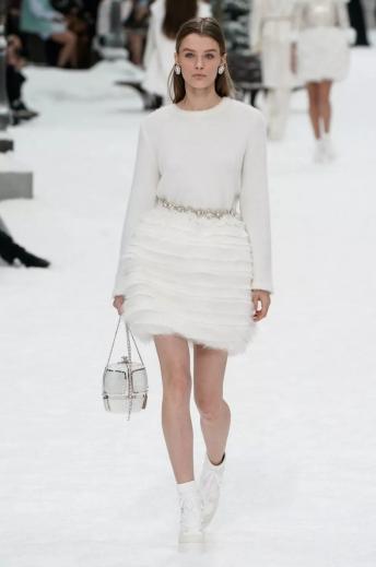 在一片白茫茫之中,Chanel推出的白色系套装显得格外娇柔有致,处处体现出精致的舒适气息。
