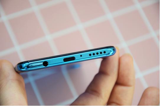 SIM卡槽设计在顶部是华为nova4e的特点,也是我第一次看到设计在顶部的手机,挺让人意外的,手机的底部有3.5mm标准的耳机插孔,Type-C接口和扬声器,耳机接口在底部的设计更方便,给平日使用带来了不少便携。