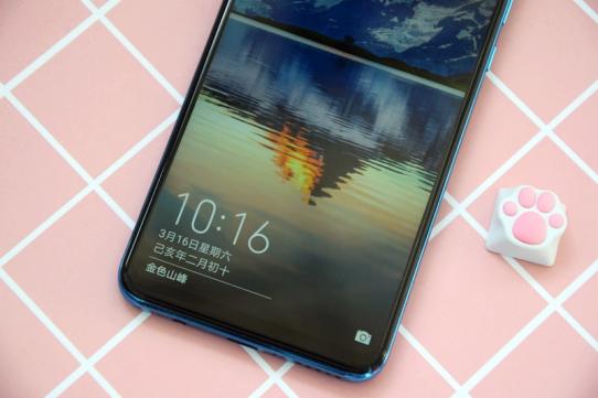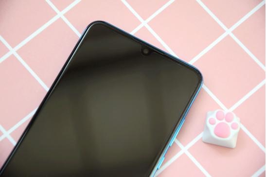 首先来看看华为nova4e的外观,华为nova4e有幻夜黑、珍珠白、雀翎蓝三款配色,我这款是雀翎蓝,采用了6.15英寸的“珍珠全面屏”设计,带来84.1%超高屏占比和超窄边框,19.3:9比例,分辨率为2312×1080,同时这块屏幕还通过了德国莱茵护眼认证,让用户正常使用的同时还能最大限度地保护双眼。