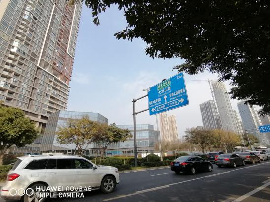 随意一张路边照,整个画面宽容度较高,样张中的房屋、树木、天空等等画面细节都保留出色,并且能够经得起放大,远处的路牌名字色彩还原准确,照片饱和度也恰如其分,简单的说华为nova 4e非常适合拍摄这种比较大气的场面。